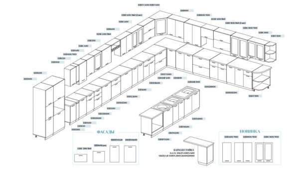 Глубина нижних шкафов без учета столешницы: 444 мм, с учетом столешницы 600 мм