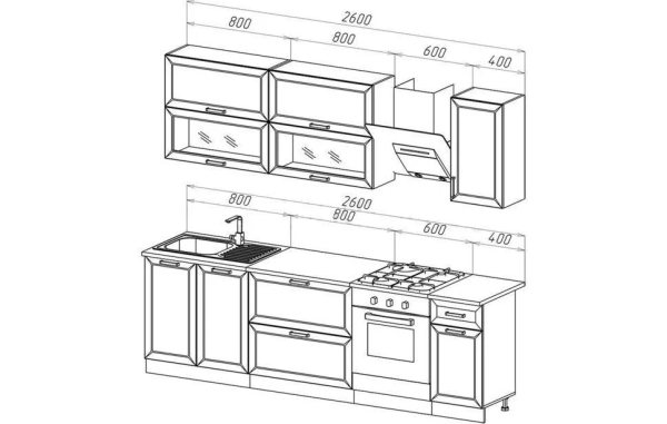 Глубина нижних шкафов со столешницей: 600 мм